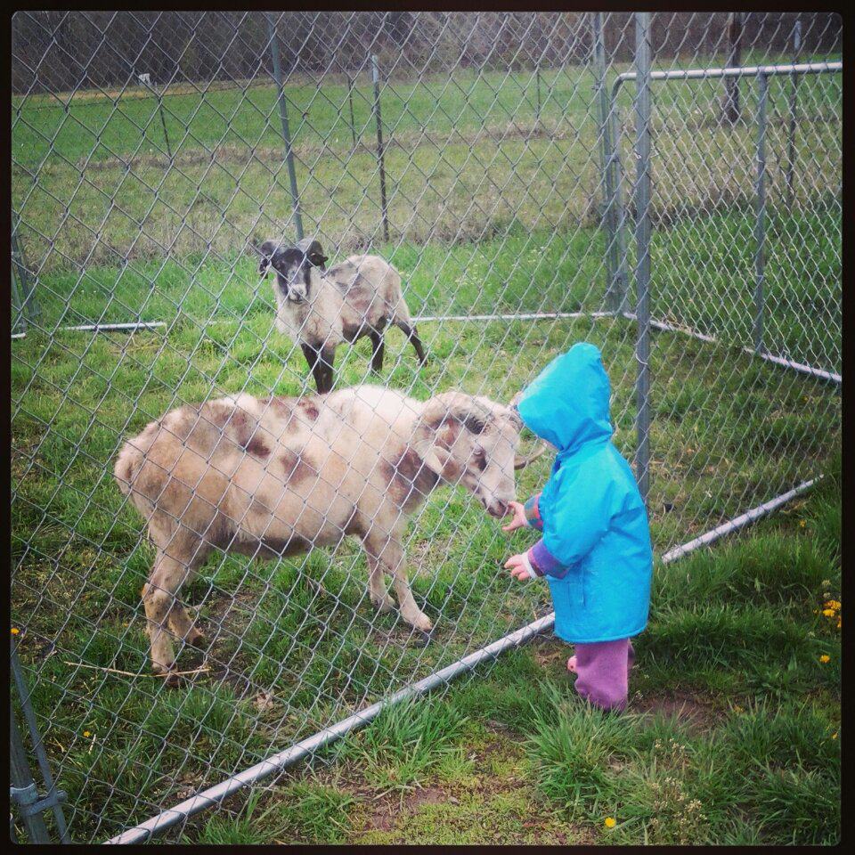 Your little princess farmer is delighted to have 2 new friends on the farm to visit every day. But since rams can be dangerous with their prominent horns and tendency to, yes, “ram” everything in site, you keep a close eye on her whenever she ventures near her new pets.